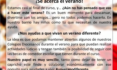 Estimados amigos: Desde la Universidad Católica de Valencia (UCV), la Fundación de Colegios Diocesanos y Caritas Diocesana, se pone en marcha el proyecto “#unveranodiferente”. Esta idea fue propuesta por nuestro Arzobispo D. Antonio Cañizares, y su objetivo es que los niños de nuestra Archidiócesis, que se encuentran en edad escolar, puedan continuar con las becas […]